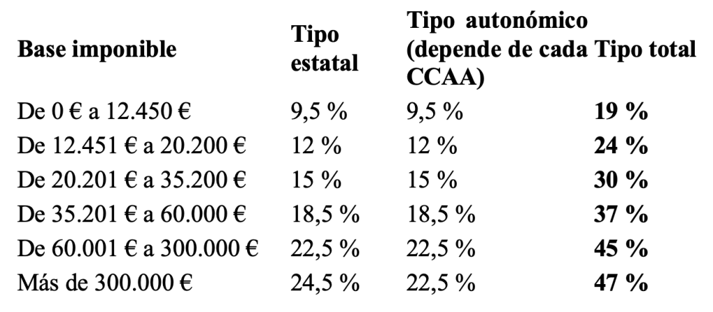 Esta tabla NO significa que todo tu salario tribute al porcentaje del tramo en el que estés.